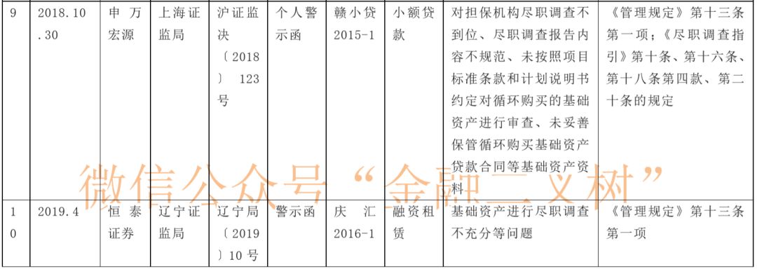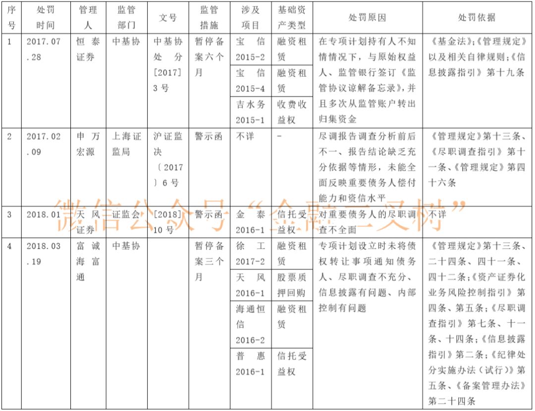 截至2019年4月25日,监管机构针对管理人及其员工ABS方面的处罚共10单。