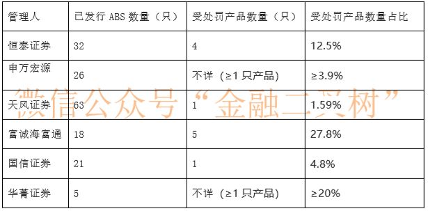 因ABS受到监管处罚的管理人共6家机构,受罚员工1人。