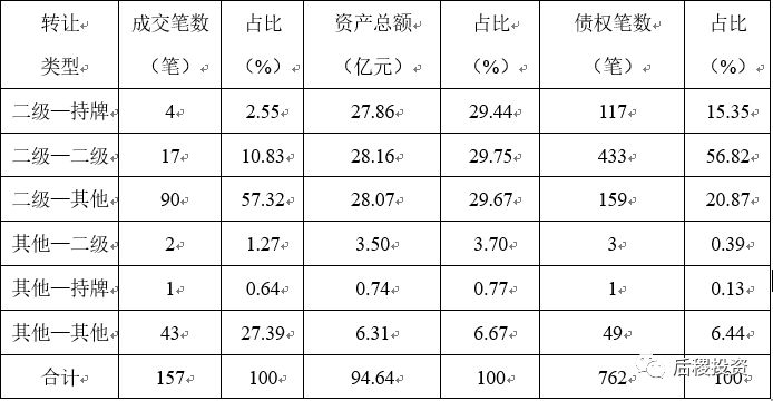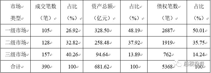 从上表可知,一级市场的成交的资产总额将近占到总成交额的一半。