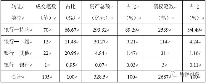 本转让类型中,持牌AMC从银行端的受让情况如下: