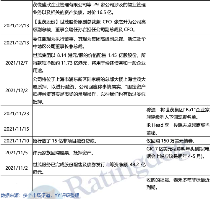 ②关联方收并购:世茂股份将物管业务转让给关联方世茂服务(16.5亿元),两天后世茂股份完成中票付息。