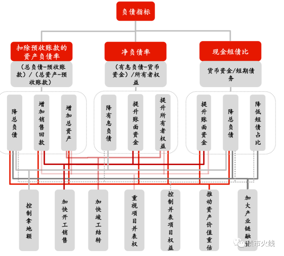 控制拿地额、加快开工销售和加快竣工结转三种手段主要从地产开发业务层面出发,而重视项目并表权、控制并表项目权益、推动资产价值重估以及加大产业链融资则可以从地产金融(包括资产证券化)角度出发找到突破路径。