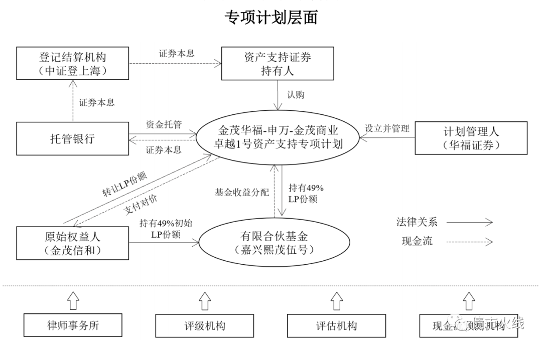 这个专项计划实质就是将一个表外项目公司纳入表内,专项计划承接了一部分LP份额,专项计划资产支持证券规模成为了金茂报表上的少数股东权益。