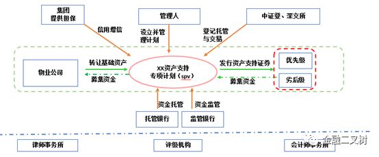 物业费ABS的交易结构有3中类型,最常见的是物业合同债权直接转让和基于物业费质押担保贷款债权转让两种模式;