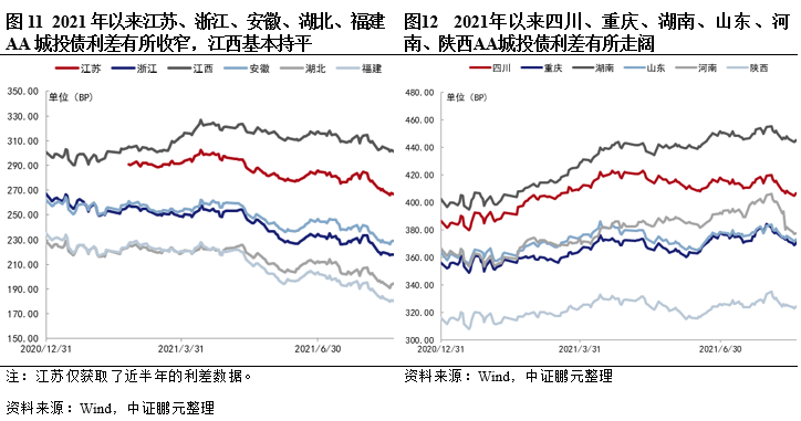 2021年以来全国城投债利差总体有一定收窄,但区域之间利差走势继续分化