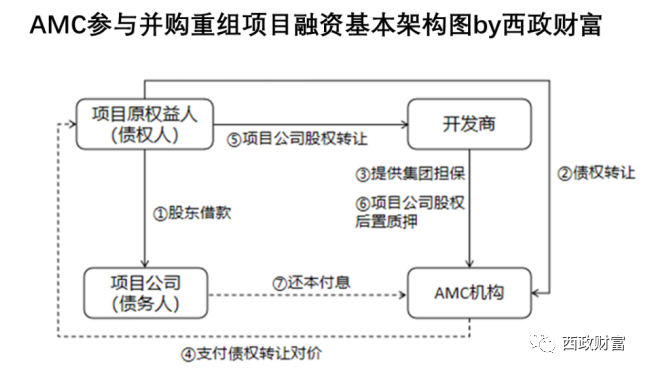 1. AMC机构收购项目原权益人对项目公司的股东借款或其上游供应商对项目公司的应收未收工程款等债权,AMC支付债权转让价款,开发商(收购方)就项目公司的债务偿还向AMC提供集团层面的保证担保。