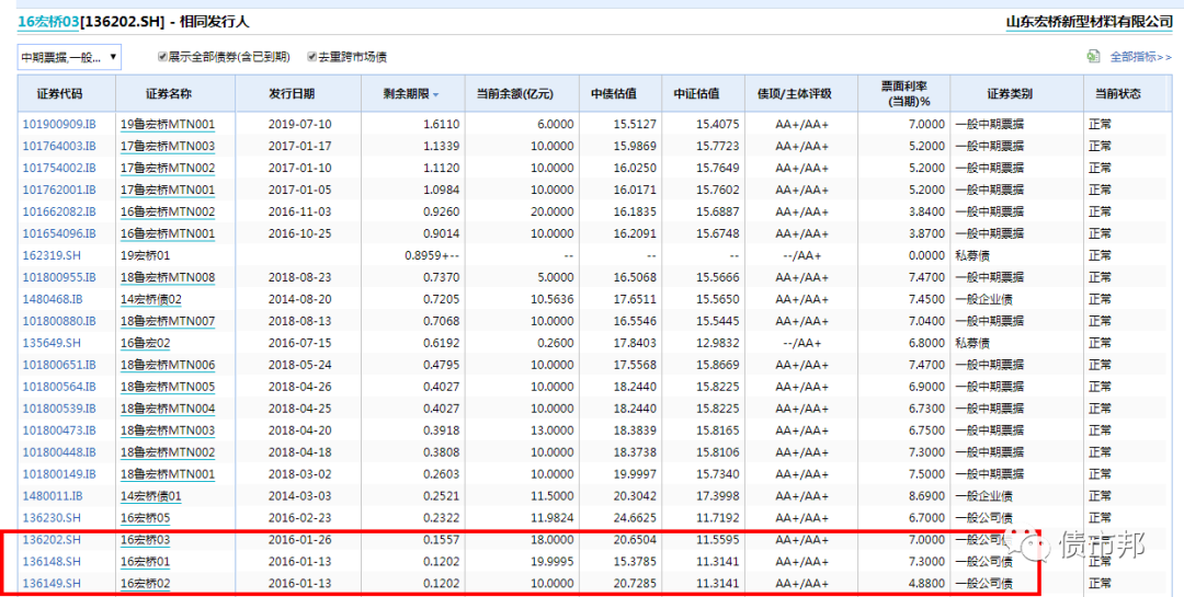 还是那句话,市场不是傻子,虽然该三笔待回购的债券的二级市场价格迅速反弹,但是宏桥其他剩余期限较长的中票估值依然还是在那高高的山岗上。