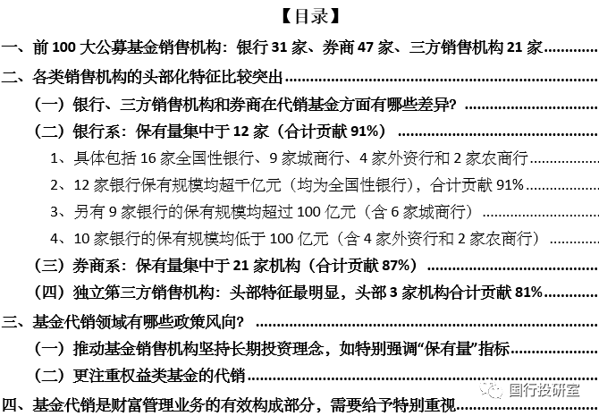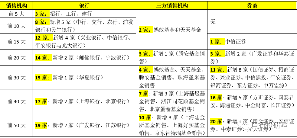 这里的销售机构主要包括银行、三方销售机构和券商等三类。不过从每一类销售机构来看,头部化特征亦比较突出,且趋势仍将持续。