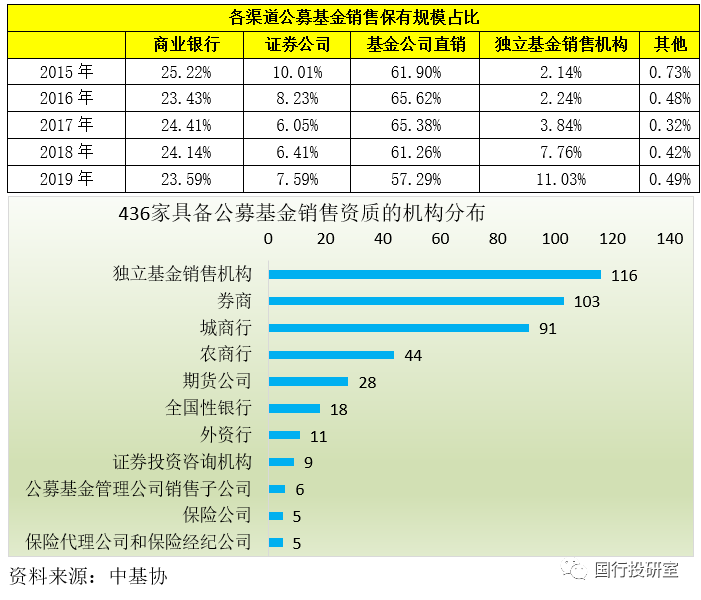 根据中基协公布的数据,目前共有436家机构具备公募基金销售资质。不过在上述436家机构中,目前也只有银行、独立基金销售机构和券商闯出了一片天地。当然基金的代销渠道正变得越来越重要,特别是直销的比例在逐年下降,而独立基金销售机构的重要性则提升明显。