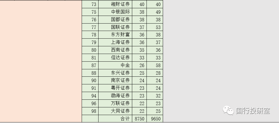 (三)券商系:保有量集中于21家机构(合计贡献87%)