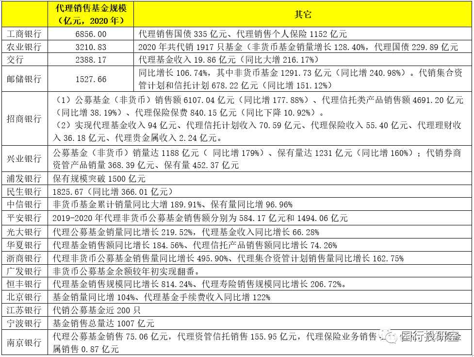 基金代销、自营理财以及代销资管计划、信托计划、保险等均是财富管理业务的有效组成部分,而基金代销尤为受到重视,这主要和近两年公募基金规模大幅增长有关(如截至2021年5月20日,非货币公募基金的规模已增至12.84万亿,2018-2020年底分别为4.76万亿、7.29万亿和12.01万亿)。同时基金代销业务亦相当于银行的个人客户提供了投资权益类资产、涉足资本市场的有效渠道。