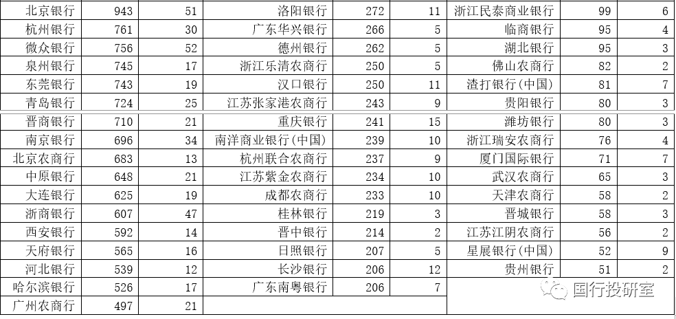 3、另有9家银行的保有规模均超过100亿元(含6家城商行)