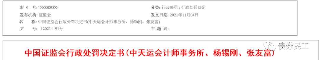 3、根据证监会2021年11月4日公布的行政处罚决定书,中天运会计师事务所因为在山东胜通集团的审计过程中,“出具的胜通集团2013年至2017年年度审计报告存在虚假记载”和“对胜通集团2013年至2017年年度财务报表审计时未勤勉尽责”,被责令改正,没收业务收入并罚款。