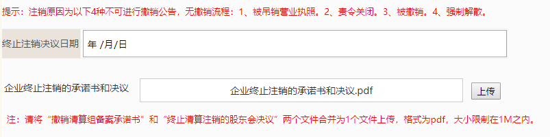 3.3点击“上传”,上传企业终止注销的承诺书和股东会决议,点击“撤销预览”