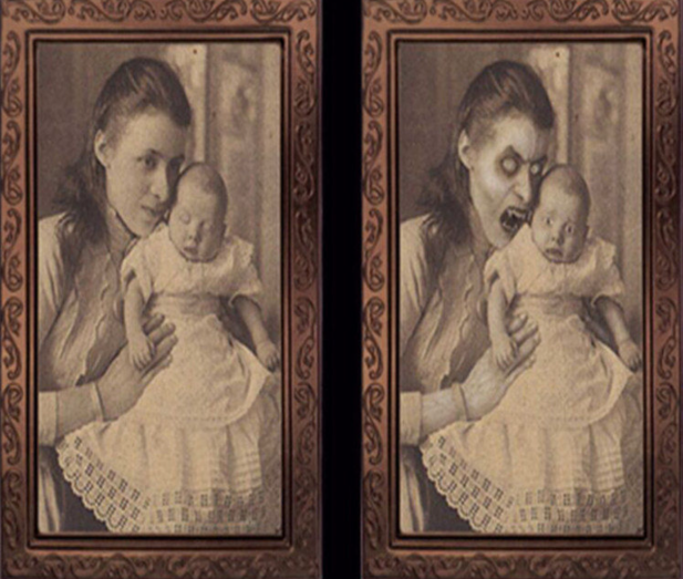 图8:“密室逃脱”中的3D变脸道具画,玩家在不同角度会看到不同画面