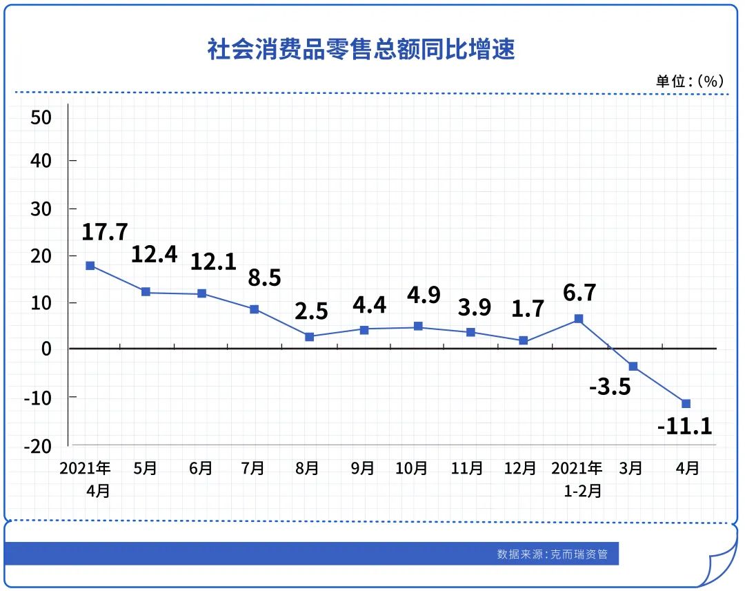 国家统计局数据显示,2022年4月,社会消费品零售总额29483亿元,同比下降11.1%,继3月首次转负后降幅再次扩大。