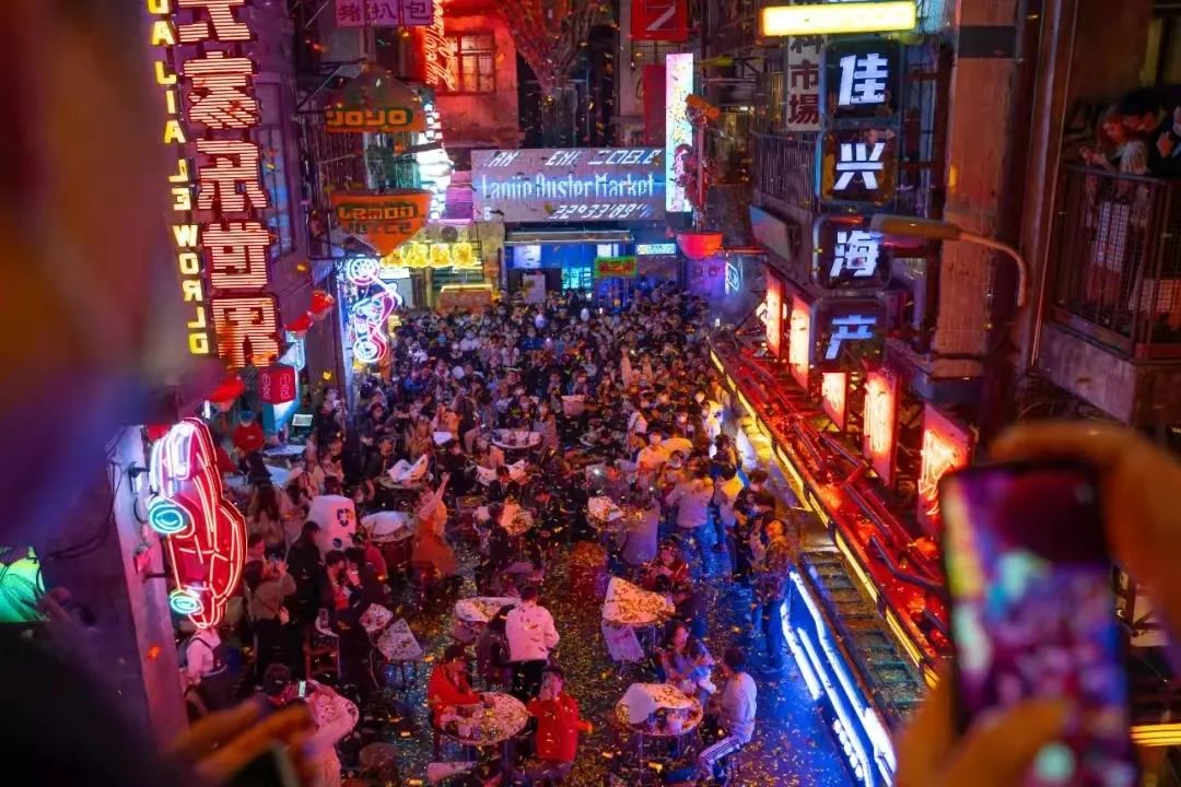 2015年,文宾开起了老长沙龙虾馆,年收入达到1亿元。2019年,长沙超级文和友诞生,杂乱的广告牌、昏暗斑驳的墙皮、牛皮癣小广告、霓虹灯牌、老式录音机、80年代的缆车等怀旧场景与物品,加上集合本土口味的街头小吃,俨然一个极富烟火气息的文化社区,吸引了众多消费者前来品尝打卡。比起一般的街头路边摊,人们来这里,不仅是吃美食,也在买“沉浸式的文化体验”。