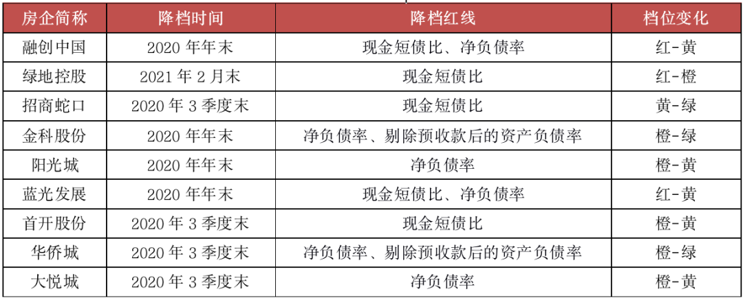 据统计,目前已有多家房企成功降档,截止至2020年三季度,招商蛇口、首开股份、华侨城、大悦城等房企成功降档;截止至2020年年底,融创、金科、阳光城、蓝光等房企成功降档;2021年2月末,绿地称提前“转绿”达标。