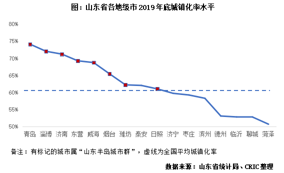 属“山东半岛城市群”的8座城市城镇化率普遍较高,青岛领跑。从城镇化率来看,截至2019年,全省平均城镇化率为61.5%,略高于全国60.6%的平均水平。省内城市出现分化,属“山东半岛城市群”(包括济南、青岛、淄博、威海、烟台、潍坊、日照和东营在内)的8个城市,城镇化水平均高于全国平均水平。其中,青岛的城镇化率最高,接近75%,与长三角宁波、无锡等城市处同一梯队。偏内陆的鲁西南几个城市城镇化率暂处50%-60%区间,推进城镇化的同时能催生更多的住房需求。同时,山东省积极开展棚户区改造,2021年确保新开工棚户区改造12.3万套,也将支持山东省房地产的良性发展。