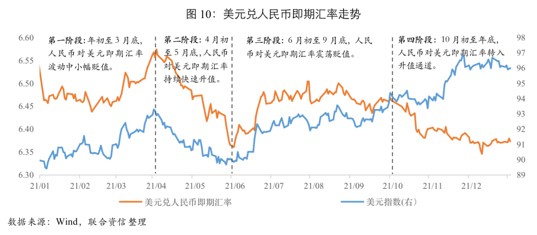 六、2021年人民币对美元即期汇率在合理区间保持基本稳定,2022年或小幅走弱