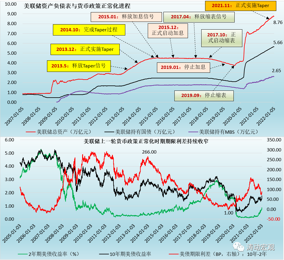 虽然表面上看,对通胀的担忧是美联储加快Taper步伐与提前加息的大背景,而对期限利差收窄的担忧则导致加息与缩表节奏加快的另外一个原因。