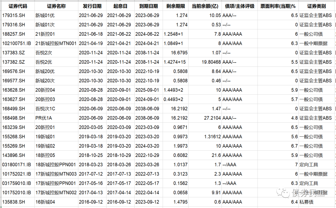 2、新城控股集团股份有限公司3月18日公告,公司部分高管以市场化方式在二级市场购买不超过2000万元本公司发行的公司债券。目前新城控股存续债券21只,包括公司债券、资产证券产品、中期票据和定向工具。其中存续公司债券8只,存续公司债券金额为62.32亿元。新城控股最近一次发行债券是在2021年6月29日发行了规模为2.548亿元的“新城01优”、“新城01次”。