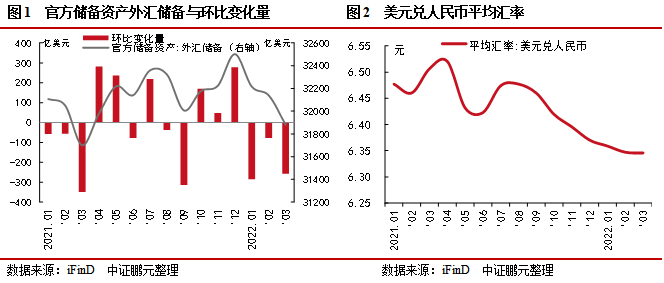 3月外汇储备规模为31,880亿美元,环比下降258亿美元,美元兑人民币汇率整体稳定;