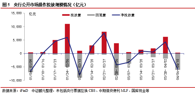 清明节后第一周只有三个工作日,月初整体资金宽裕。央行7天逆回购投放300亿元,7天逆回购到期6,100亿元,合计净回落5,800亿元。上周国常会提出适时动用货币政策工具,债市博弈降准,出现边际回暖。关注本周的社融数据和15号MLF续期情况。