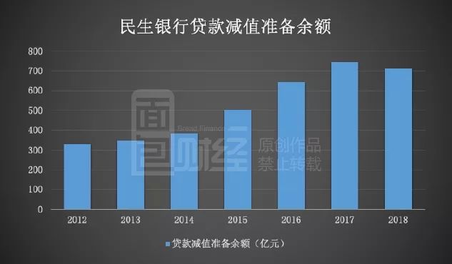 年报显示,截至2018年底,民生银行贷款减值准备余额为712.16亿元,较上年末下降了33.03亿元。