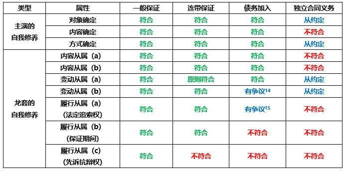 上述从属性仅履行从属(c)项不符合,为连带责任保证。