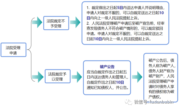 根据《企业破产法》第2、12条规定,人民法院裁定不受理破产申请的,应当自裁定做出之日起5日内送达申请人并说明理由,申请人对裁定不服的,可以自裁定送达之日起十日内向上一级人民法院提起上诉。人民法院受理破产申请后至破产宣告前,经审查发现债务人不符合破产法第二条规定的情形的,可以裁定驳回申请。申请人对裁定不服的,可以自裁定送达之日起十日内向上一级人民法院提起上诉。