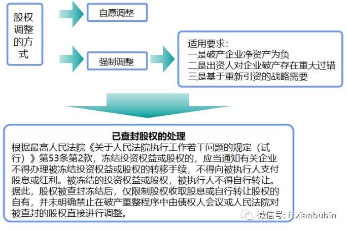 三是股权转让的限制及股权调整方案。债务人出资人不得请求投资收益分配;除经人民法院同意,董监高不得向第三人转让所持股权。股权调整是重整计划草案中债务人经营方案的重要内容,通过股权的调整筹措资金,引入新的投资者,或改变公司的经营控制结构已成为实务中债务人重整的普遍做法。