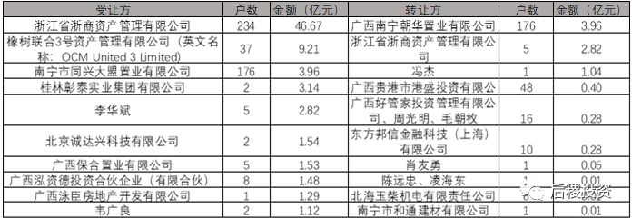 广西省持牌AMC是4+2的格局(广西金控、广投资产),从成交数据来看,东方和广投没有查到成交记录。