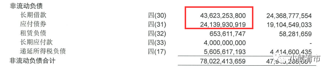 除此之外,新城控股还有780.22亿非流动负债,主要为长期借款和应付债券,其长期有息负债合计677.63亿元。
