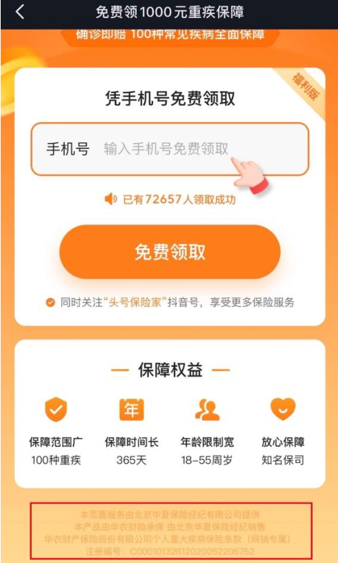 二是在保险生态布局方面,抖音与华农财产保险有限公司推出头号保,主要针对各种疾病,凭手机号免费领1000元重疾保障。其中,百万医疗险涵盖大病小病,最高600万保额,首月只要1元,后续每月15.55元起。