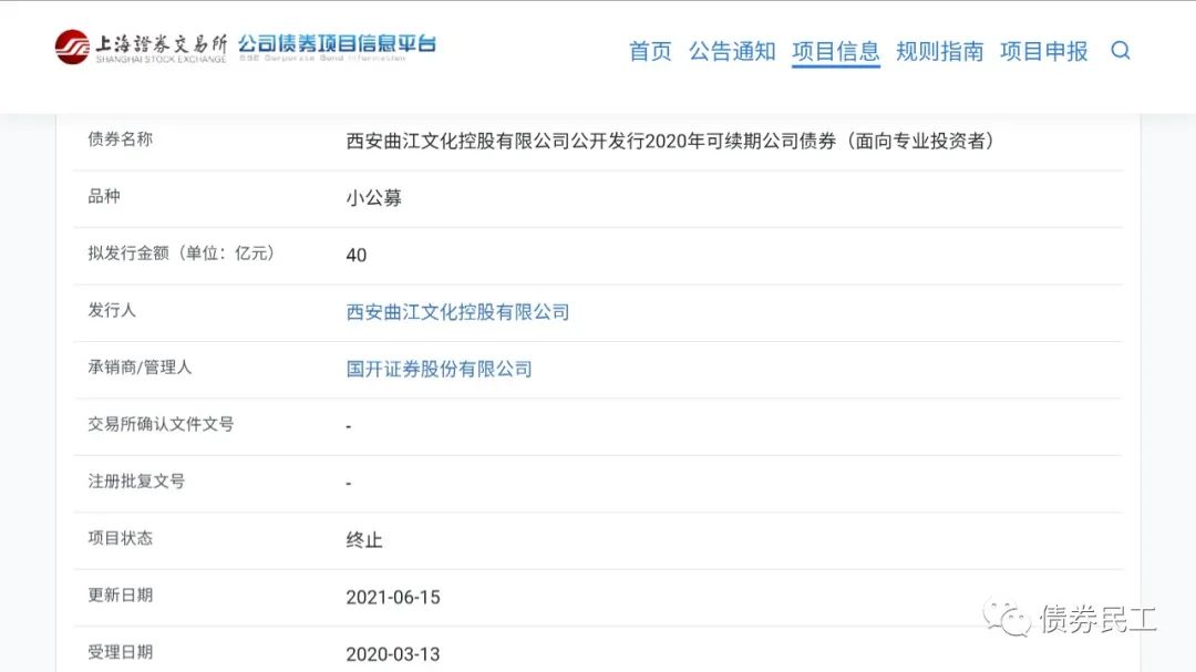 2、可续期公司债券。西安曲江文化控股有限公司公开发行2020年可续期公司债券(面向专业投资者),拟发行金额40亿元,申报时间为2020年3月13日,终止时间为2021年6月15日。