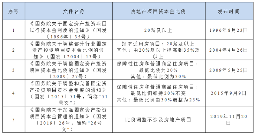 【2】保障性住房和普通商品住房项目资本金不得低于20%,其他房地产项目不得低于25%